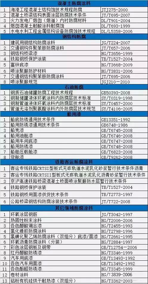 防腐漆標(biāo)準(zhǔn)大匯總